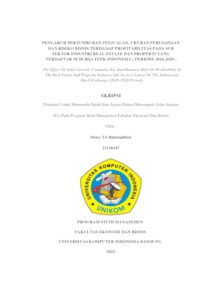Rahmadhini, Rahmadhini (2022) Pengaruh Pertumbuhan Penjualan, Ukuran Perusahaan Dan Risiko Bisnis Terhadap Profitabilitas Pada Sub Sektor Industri Real Estate Dan Properti Yang Terdaftar Di Bursa Efek Indonesia ( Periode 2016-2020 ). Other thesis, Universitas Komputer Indonesia.