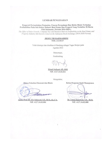 | Uncontrolled Keywords: | Pertumbuhan Penjualan, Ukuran Perusahaan, Risiko Bisnis, Profitabilitas |