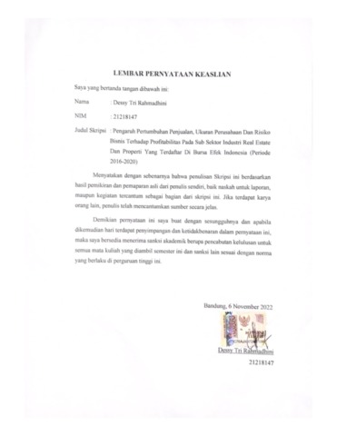 Copy of UNIKOM_DESSY TRI RAHMADHINI_LEMBAR PERNYATAAN KEASLIAN.pdf - Published Version