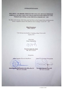 Permatasari, Dianti (2022) Pengaruh Laba Bersih, Kebijakan Hutang, Dan Arus Kas Terhadap Kebijakan Dividen Pada Perusahaan Sektor Infrastruktur Yang Terdaftar Di Bursa Efek Indonesia Periode 2017 – 2021. Other thesis, Universitas Komputer Indonesia.