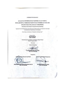 | Uncontrolled Keywords: | Kualitas Informasi, Kepercayaan, Keputusan Pembelian |