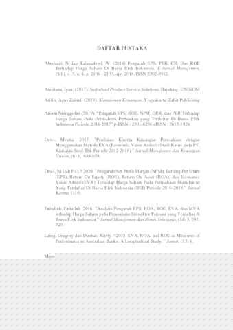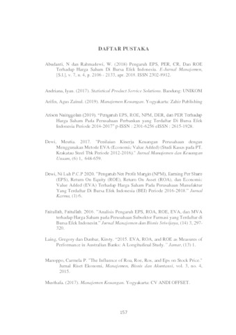 Priambudi, Fauzan Dwi (2022) Pengaruh Nilai Tambah Ekonomis (EVA), Pengembalian Ekuitas (ROE), Dan Laba Per Lembar Saham (EPS) Terhadap Harga Saham Pada Perusahaan Sub Sektor Pulp Dan Kertas Yang Terdaftar Di BEI Periode 2015-2020. Other thesis, Universitas Komputer Indonesia.