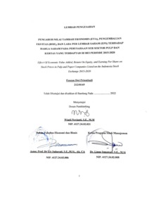 Penelitian ini bertujuan untuk mengetahui besarnya pengaruh Nilai Tambah Ekonomis (EVA), Pengembalian Ekuitas (ROE), Dan Laba Per Lembar Saham (EPS) terhadap Harga Saham pada perusahaan sub sektor pulp dan kertas yang terdaftar Di Bursa Efek Indonesia Periode 2015-2020. Metode yang digunakan adalah metode deskriptif dan verifikatif. Sample yang digunakan adalah 30 data dari 5 perusahaan sub sektor pulp dan kertas yang terdaftar di Bursa Efek Indonesia Periode 2015-2020. Metode analisis data yang digunakan adalah analisis jalur (Path Analysis) menggunakan program SPSS 20.