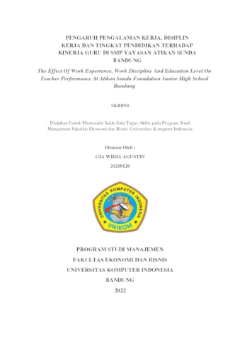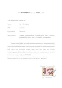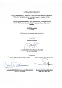 Agustin, Gia Widia (2022) Pengaruh Pengalaman Kerja, Disiplin Kerja Dan Tingkat Pendidikan Terhadap Kinerja Guru Di Smp Yayasan Atikan Sunda Bandung. Other thesis, Universitas Komputer Indonesia.