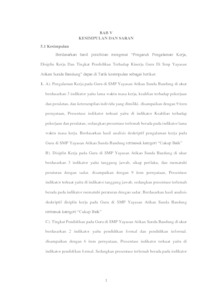 Penelitian ini bertujuan agar dapat menganalisis pengaruh Pengalaman Kerja, Disiplin Kerja, Tingkat Pendidikan dan Kinerja Guru baik secara parsial maupun simultan. Penelitian ini dilakukan di SMP Yayasan Atikan Sunda Bandung. Populasi pada penelitian ini adalah Guru di SMP Yayasan Atikan Sunda Bandung. Metode penarikan sampel yang digunakan dengan cara nonprobability sampling dengan teknik sampling jenuh sebanyak 35 orang responden. metode analisis pada penelitian ini menggunakan analisis deskriptif dan verifikatif yang terdiri dari analisis analisis regresi berganda, uji asumsi klasik, analisis korelasi, analisis koefisien determinasi dan pengujian hipotesis dengan bantuan program SPSS. Hasil penelitian ini menunjukan bahwa secara parsial Pengalaman Kerja mempunyai pengaruh yang signifikan terhadap Kinerja guru, sama dengan Disiplin Kerja secara parsial memiliki pengaruh yang signifikan terhadap Kinerja Guru dan Tingkat Pendidikan secara parsial memiliki pengaruh yang signifikan terhadap Kinerja Guru. namun terdapat pengaruh signifikan secara bersama antara Pengalaman Kerja, Disiplin Kerja dan Tingkat Pendidikan secara simultan terhadap Kinerja pada Guru di SMP Yayasan Atikan Sunda Bandung.