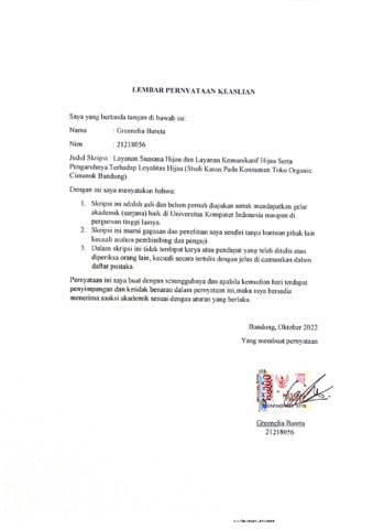UNIKOM_GREENELIA BARETA_LEMBAR PERNYATAAN KEASLIAN.pdf - Published Version