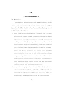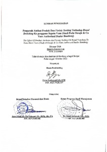 Penelitian ini bertujuan untuk mengetahui pengaruh atribut produk dan variety seeking terhadap brand switching ke pengguna sepatu Vans serta mengetahui tanggapan responden menegenai Atribut produk dan variety seeking terhadaap brand switching baik secara parsial maupun simultan. Metode yang dipakai pada penelitian ini dengan analisis deskriptif dan verifikatif melalui pendekatan kuantitatif, dengan perhitungan uji asumsi klasik dan regresi linier berganda pada software SPSS. Data yang dipakai yaitu data promer dan data sekunder. Pengumpulan data primer dilakukan dengan menyebar kuesioner pada sampel sebanyak 65 konsumen Oraqle & Co Vans Authorized Dealer Bandung. Berdasarkan hasil penelitian tersebut bahwa atribut produk secara parsial berpengaruh terhadap brand switching ke pengguna sepatu Vans, dan Variety seeking secara parsial berpengaruh terhadap brand switching ke pengguna sepatu Vans. Sedangkan Atribut produk dan variety seeking berpengaruh secara bersama-sama (simultan) terhadap brand swtihcing ke pengguna sepatu vans.