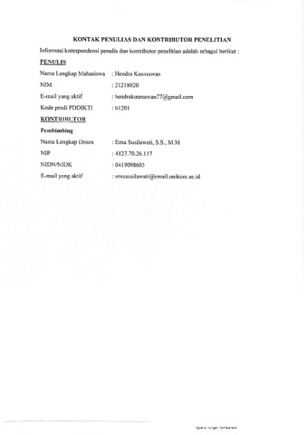 UNIKOM_HENDRA KUSMAWAN_KONTAK PENULIS DAN KONTRIBUTOR PENELITIAN.pdf - Published Version
