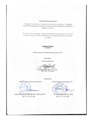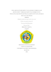 Hutagalung, Ibranius Taruna (2022) Pengaruh City Branding “Pangandaran World Class Destination” Terhadap Keputusan Berkunjung Wisatawan Ke Destinasi Wisata Kabupaten Pangandaran Melalui City Image. Other thesis, Universitas Komputer Indonesia.