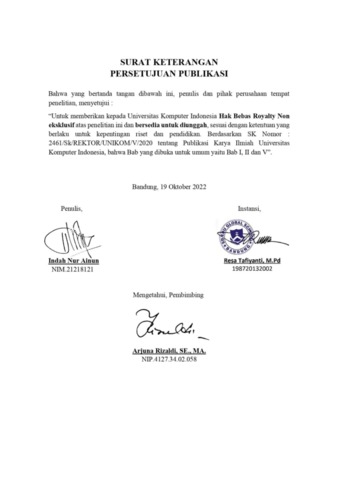 UNIKOM_INDAH NUR AINUN_LEMBAR KETERANGAN PERSETUJUAN PUBLIKASI.pdf - Published Version