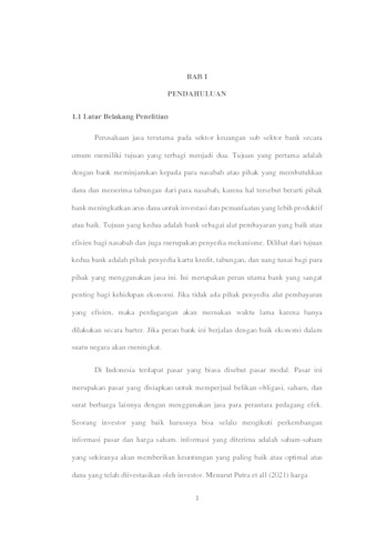 Penelitian ini bertujuan untuk mengetahui Pengaruh Pengembalian Ekuitas (ROE), Rasio Pembayaran Dividen (DPR) dan Rasio Harga Penghasilan (PER) Terhadap Harga Saham Studi Empiris Perusahaan Jasa Sektor Keuangan Sub Sektor Bank Yang Terdaftar Di Bursa Efek Indonesia Periode 2016-2020.
