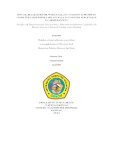 Maula, Ismatul (2022) Pengaruh Karateristik Wirausaha, Motivasi Dan Kemampuan Usaha Terhadap Keberhasilan Usaha Pada Sentra Percetakan Pagarsih Bandung. Other thesis, Universitas Komputer Indonesia.