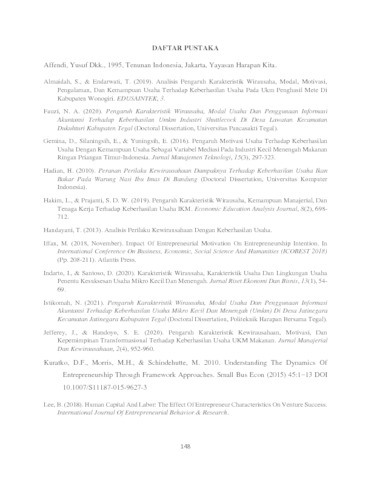 | Uncontrolled Keywords: | Karakteristik Wirausaha, Motivasi, Kemampuan Usaha, Keberhasilan Usaha. |