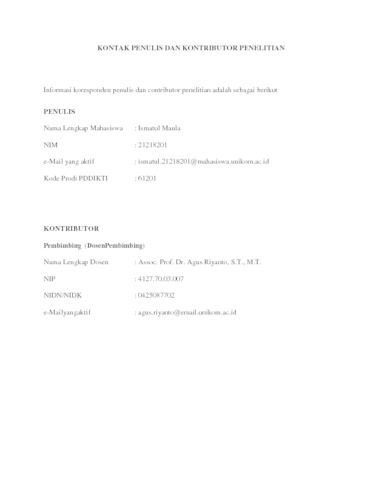 UNIKOM_ISMATUL MAULA_LEMBAR KONTAK PENULIS DAN KONTRIBUTOR.pdf - Published Version