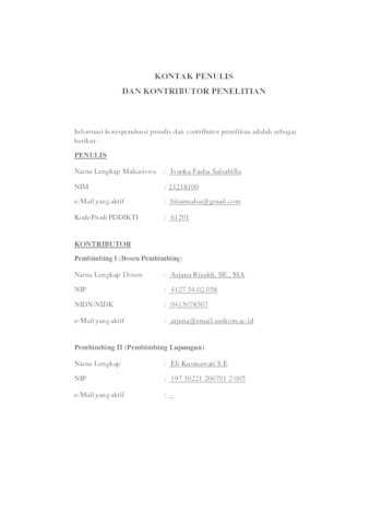 UNIKOM_IVANKA FASHA SALSABILLA_21218100_MANAJEMEN_LEMBAR KONTAK DAN KONTRIBUTOR.pdf - Published Version