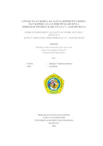 Santoso, Johanes Yudistira (2022) Lingkungan Kerja, Kualitas Kehidupan Kerja Dan Kepercayaan Diri Pengaruhnya Terhadap Kinerja Karyawan Cv. Jasindo Raya. Other thesis, Universitas Komputer Indonesia.