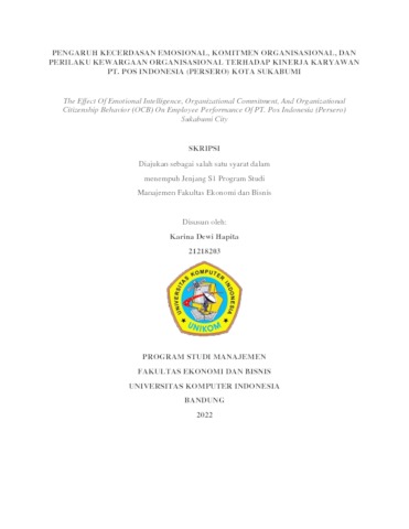 Hapita, Karina Dewi (2022) Pengaruh Kecerdasan Emosional, Komitmen Organisasional, Dan Perilaku Kewargaan Organisasional Terhadap Kinerja Karyawan Pt. Pos Indonesia (Persero) Kota Sukabumi. Other thesis, Universitas Komputer Indonesia.