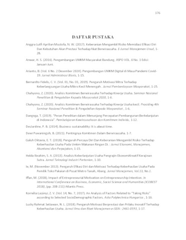 | Uncontrolled Keywords: | Motivasi Berprestasi, Keberanian Mengambil Resiko, Komitmen Berwirausaha, Keberlanjutan Usaha |