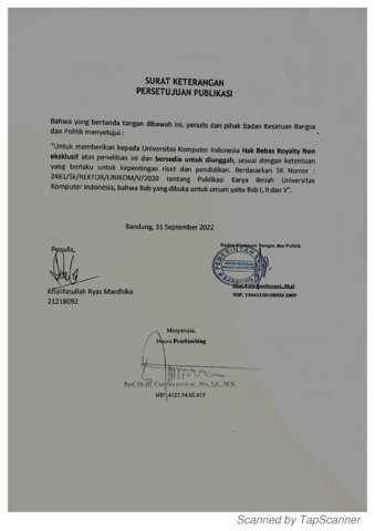 UNIKOM_KHALIFATULLAH RYAS M_SURAT KETERANGAN PUBLIKASI.pdf - Published Version