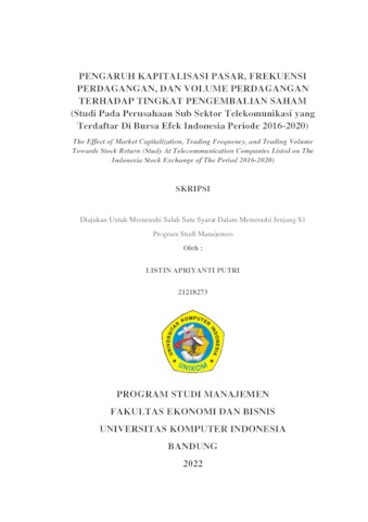 Putri, Listin Apriyanti (2022) Pengaruh Kapitalisasi Pasar, Frekuensi Perdagangan, Dan Volume Perdagangan Terhadap Tingkat Pengembalian Saham Pada Perusahaan Sub Sektor Telekomunikasi Yang Terdaftar Di Bursa Efek Indonesia Periode 2016-2020. Other thesis, Universitas Komputer Indonesia.