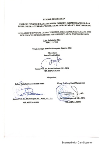 Aisy, Lulu Rohadatul (2022) Analisis Pengaruh Karakteristik Individu, Iklim Organisasi, Dan Disiplin Kerja Terhadap Kinerja Karyawan Pada Cv. Twic Bandung. Other thesis, Universitas Komputer Indonesia.