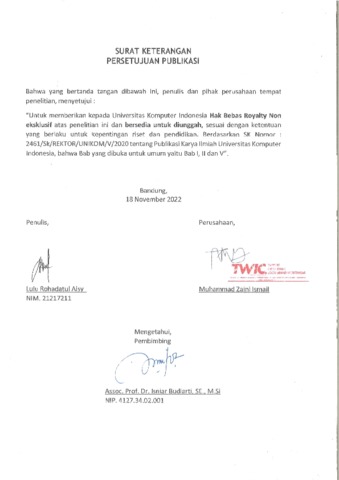 UNIKOM_LULU AISY_LEMBAR KETERANGAN PERSETUJUAN PUBLIKASI.pdf - Published Version