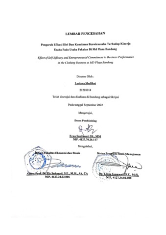 Sholihat, Lusiana (2022) Pengaruh Efikasi Diri Dan Komitmen Berwirausaha Terhadap Kinerja Usaha Pada Usaha Pakaian Di Md Plaza Bandung. Other thesis, Universitas Komputer Indonesia.