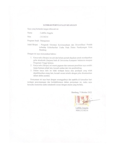 UNIKOM_LUTHFIA ANGGITA_LEMBAR PERNYATAAN KEASLIAN.pdf - Published Version