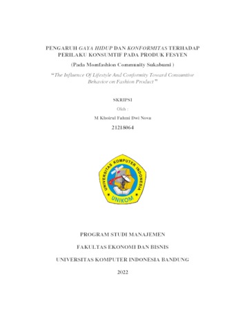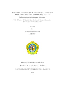 Nova, Muhamad Khoirul Fahmi Dwi (2022) Pengaruh Gaya Hidup Dan Konformitas Terhadap Perilaku Konsumtif Pada Produk Fesyen. Other thesis, Universitas Komputer Indonesia.