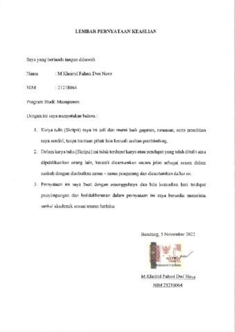 UNIKOM_M Khoirul Fahmi Dwi Nova_Lembar Keaslian.pdf - Published Version