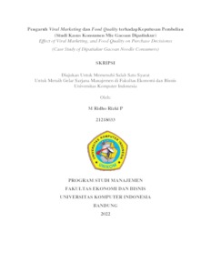 Pratama, Muhamad Ridho Rizki (2022) Pengaruh Viral Marketing dan Food Quality terhadap Keputusan Pembelian (Studi Kasus Konsumen Mie Gacoan Dipatiukur). Other thesis, Universitas Komputer Indonesia.