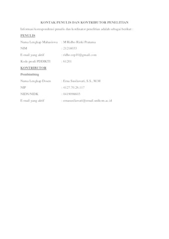 UNIKOM_M RIDHO RIZKI_KONTAK PENULIS DAN KONTRIBUTOR PENELITIAN.pdf - Published Version