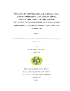 Naibaho, Mangihut (2022) Pengaruh Jiwa Kewirausahaan Dan Lokasi Usaha Terhadap Keberhasilan Usaha Pada Sentra Industri Tas Kebon Lega Kota Bandung. Other thesis, Universitas Komputer Indonesia.
