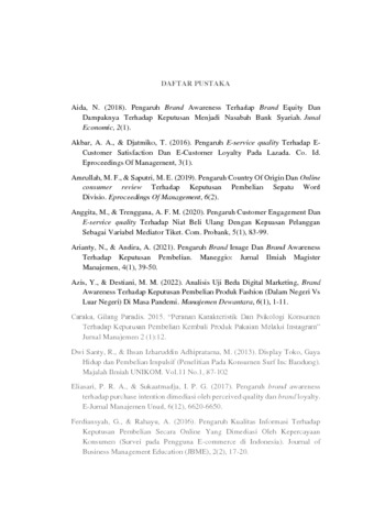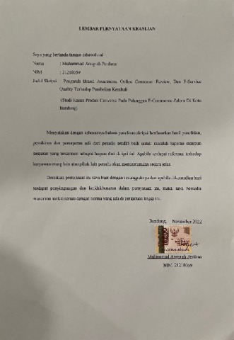 | Uncontrolled Keywords: | Brand Awarness, Online Customer Review, E-Service Quality dan Pembelian Kembali |