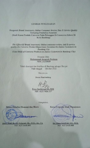 Perdana, Muhammad Anugrah (2022) Pengaruh Brand Awareness, Online Consumer Review, Dan E- Service Quality Terhadap Pembelian Kembali (Studi Kasus Produk Converse Pada Pelanggan E-Commerce Zalora Di Kota Bandung). Other thesis, Universitas Komputer Indonesia.