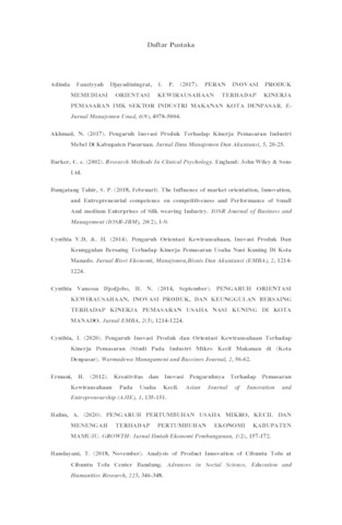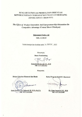 | Uncontrolled Keywords: | Inovasi Produk, Orientasi Kewirausahaan, Keunggulan Bersaing |