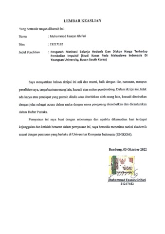 UNIKOM_MUHAMMAD FAUZAN GHIFARI_SURAT PERNYATAAN ORISINALITAS.pdf - Published Version