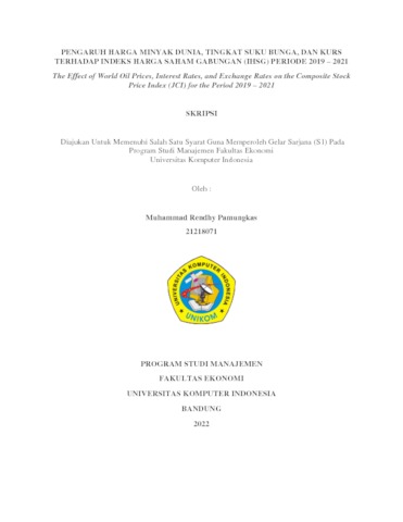 Pamungkas, Muhammad Rendhy (2022) Pengaruh Harga Minyak Dunia, Tingkat Suku Bunga, Dan Kurs Terhadap Indeks Harga Saham Gabungan (Ihsg) Periode 2019 – 2021. Other thesis, Universitas Komputer Indonesia.