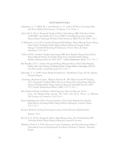 | Uncontrolled Keywords: | Harga Minyak Dunia, Tingkat Suku Bunga, Kurs dan Indeks Harga Saham Gabungan (IHSG) |