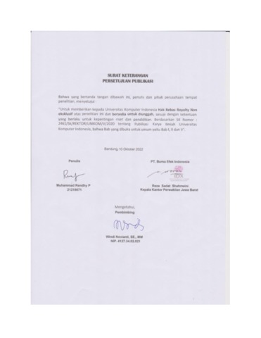 UNIKOM_MUHAMMAD RENDHY PAMUNGKAS_SURAT KETERENGAN PERSETUJUAN PUBLIKASI.pdf - Published Version