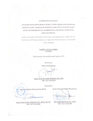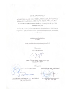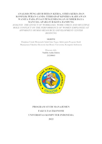 Zahra, Nadifa Aulia (2022) Analisis Pengaruh Beban Kerja, Stres Kerja Dan Konflik Peran Ganda Terhadap Kinerja Karyawan Wanita Pada Pusat Pengembangan Sumber Daya Manusia Aparatur Kota Bandung. Other thesis, Universitas Komputer Indonesia.
