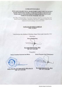 Nazhifah, Nawaliyah Noer (2022) Pengaruh Rasio Cepat, Rasio Perputaran n Rasio Perolehan Harga Terhadap Harga Saham Pada Perusahaan Sub Sektor Konstruksi Bangunan Yang Terdaftar Di BEI Periode 2016-2020. Other thesis, Universitas Komputer Indonesia.
