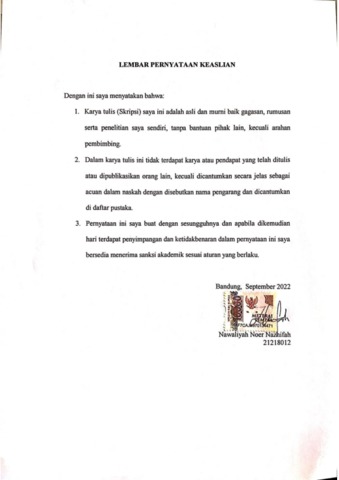 UNIKOM_NAWALIYAH NOER N_LEMBAR PERNYATAAN KEASLIAN.pdf - Published Version