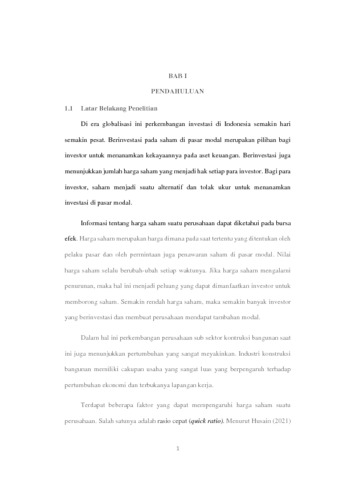 | Uncontrolled Keywords: | Rasio Cepat, Rasio Perputaran Aset Tetap, Rasio Perolehan Harga, Harga Saham |