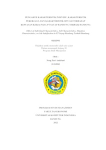 Andriani, Neng Puri (2022) Pengaruh Karakteristik Individu, Karakteristik Pekerjaan, Dan Karakteristik Situasi Terhadap Kepuasan Kerja Pada Pt Sayap Bandung Terbaik Bandung. Other thesis, Universitas Komputer Indonesia.