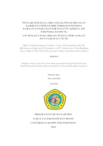 Safitri, Nia (2022) Pengaruh Budaya Organisasi, Pengembangan Karir Dan Efikasi Diri Terhadap Kinerja Karyawan Pada Kantor Pusat Pt. Kereta Api Indonesia Bandung (Studi Kasus Pada Bidang Budaya Perusahaan Dan Fasilitas Umum). Other thesis, Universitas Komputer Indonesia.