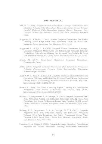 Aliani, Rahayu (2022) Pengaruh Leverage (Der), Perputaran Total Asset Dan Ukuran Perusahaan Terhadap Profitabilitas Pada Perusahaan Sub Sektor Perdagangan Eceran (Ritel) Yang Terdaftar Di Bursa Efek Indonesia Periode 2016-2020. Other thesis, Universitas Komputer Indonesia.