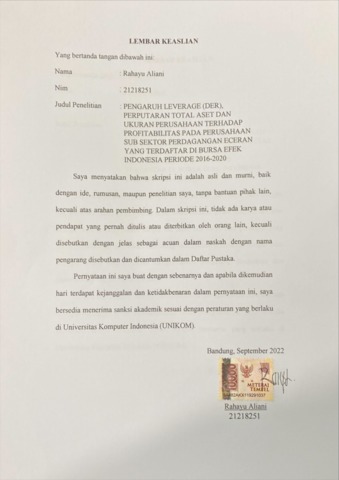 UNIKOM_RAHAYU ALIANI_SURAT PERNYATAAN ORSINALITAS.pdf - Published Version