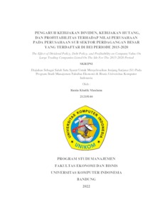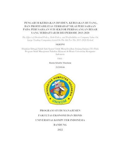 Maulana, Rania Khalik (2022) Pengaruh Kebijakan Dividen, Kebijakan Hutang, Dan Profitabilitas Terhadap Nilai Perusahaan Pada Perusahaan Sub Sektor Perdagangan Besar Yang Terdaftar Di Bei Periode 2015-2020. Other thesis, Universitas Komputer Indonesia.