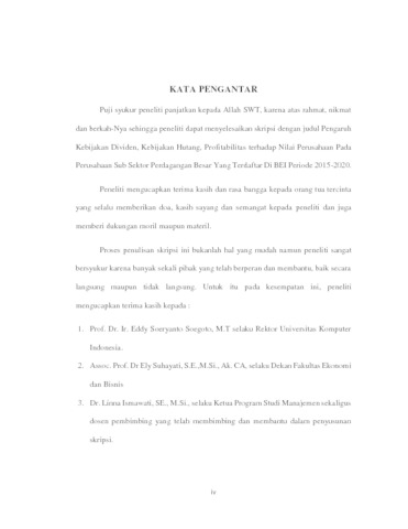 | Uncontrolled Keywords: | Kebijakan Deviden, Kebijakan Hutang, Profitabilitas, Nilai Perusahaan |